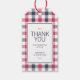 Snyggt rött, vitt och blått rutigt bröllop tack ko presentetikett