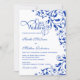 © Socialite Designs. En inbjudan till ett blått bröllop i eleganten med en fantastisk hörndekorativ snurrande redo för att vara personlig för din speciella händelse. Teckensnitt stil, text och papper text kan ändras. Behöver du hjälp med att anpassa eller utöka produkter med den här designen? Tveka inte att kontakta Socialite Designs.