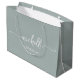 Modern Sage Grönt Elegant Glam Monogram Namn-skript Namnteckning Anpassningsbar Personlig Gift Bag. Denna minimalistiska delikata färg-design med första namn i en söt handskriven kalligrafi av svan-teckensnitt (eller typografi) med texten "BRIDESMAID" i vit färg på spage-grönt eller dammig stil bakgrund i grönt. Dessa är lätta att anpassa. Den här feminina presentsäcken är underbart tillbehör till möhippa, till ett frieri, till bröllop eller ett parti med bachelorette, och det är för flickan som kärlek är ett unikt minimalistiskt sak.
