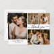 Elegant, Snyggt Hand, Bröllop 4 fotosamlingskort Tack. Minimalistiskt tack för bröllop, du har en kortmall med fyra foto på framsidan och ett foto på baksidan. Med texten "Tack" i ett snabbt, handskrivet skrivstil med ett typsnitt med dekortecken eller i svart på vit bakgrund. Lägg till ditt eget namn och tack för meddelandet. Om du föredrar att skicka anteckningen tar du bara bort exempeltexten för att få mer utrymme. Kontakta mig om du behöver hjälp eller matcha objekt!