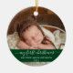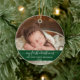 Elegant Snyggt Trendig Skript Min första Baby Photo Grönt Ornament med Snöflingor tillbaka