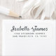 Enkel, snyggt modern svartvitt-adressetikett med namn i ett handskript i off-black elegant på vit bakgrund. Lägg bara till namn och adress. Enbart designad för dig med Lycklig Dolphin Studio!