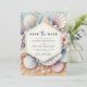 Snyggt Seashell Beach Wedding förenar kustcharm och modern design. Det här sparar datumkortet med chic årstidsmotiv som utmärkt belyser ditt strandbröllop. Du kan anpassa alla detaljer så att de återspeglar ditt unika stil. Det går att redigera onlinen helt och hållet. Med en omedelbar nedladdningsfunktion får du ett redo för digitalt kort för snyggt att skicka ut och bjuder in dina nära och kära för att fira dina havsbottnar.
