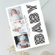 Modern Elegant 3-vykort för foto Nyfödd bebis Tack med ett modernt minimalistiskt Sans serif-teckensnitt och snyggt fet typografi för "baby" på sidan, och de tre baby- och familjefotografierna. I kärlek och tack vare baby fototack har du ett anpassningsbar-meddelande på baksidan av redot som ska ändras. Mallen är svart och vit, men färg kan också ändras. Underbar för en familj som tittar för en enkel många-fotografidusch eller ett modernt baby-meddelande tack för vykortet!