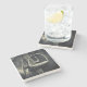 En sten underlägg med ett svart och vitt sepiatonfotografi i klass. En bild av en engelsk lädersadel som fokuserar på silver-uppståndarnas. Perfekt för engelska ridentusiaster.