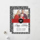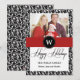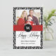 En dramatisk design med svart och vit abstrakt, ett fet rött band och en monogramcirkel i mitten. Orden "Glad helg" är förtryckt framtill.