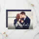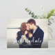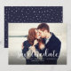Trendig och uppspelning av skripttypografi täcker över bröllop spara datum-fotokort.