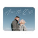 Ge är dina gäster ett unikt sätt att komma ihåg ditt kommande bröllop-datum med vårt vackra skript för att spara datumfotomagneterna. Spara datum magneter visningar ditt favoritfoto med förlovningen Spara datum i ett modernt teckensnittsöverlägg för kalligrafi-skript. Anpassa chic spara datum magneter genom att lägga till namn, bröllop-datum och stad/stat på din bröllop-plats.