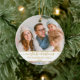 Elegant Snyggt Trendig Skript vår första julfamilj Photo Guld och White Ornament