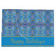 Snyggt blå och guld snöflingor i mönster-presentsäck.