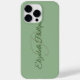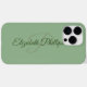 Den här telefonväskan har en solid grönt-bakgrund med det mörkare grönten namn och det första brev monogrammet för pastel. Anpassa fält, ta bort valfri text eller klicka på anpassa för att markera ett teckensnitt stil, storlekt och färg som du vill använda.