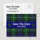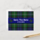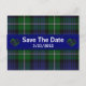 Snyggt bröllop spara datum-postkort i den traditionella grönten Forbes och blå tjärtan i bakgrunden. Ett blått band springa på mitten på kortet som dekoreras med två flata hjärtan på vardera sidan av den vita texten. All text på kortets framsida och baksida är fullt anpassade att läsa vad du vill.