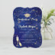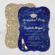 studentmössan guld glitter, champagneglas och stjärnor på marinblå bakgrund.