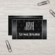 Gör ett bestående intryck med den här eleganten affärskort-designen som innehåller skum svartvit gräns och monogram mönster mot svart bakgrund. Anpassa enkelt det här affärskortet till ditt varumärke. Allt du ser är faux foil, men en kvalitetsutskrift. ♡ DIN FAVORITE - Designer:-) Modern och professionell affärsvaror. ♡ jag önskar er lycka till med denna punkt. ♡ www.zazzle.com/store/your_favorite ♡ www.zazzle.com/store/favorite_markeplies ♡