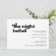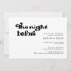 Kvällen före.. Se till att allt är perfekt för den stora dagen. Få några moderna inbjudningar till din bröllop-repetitionsmiddag. Ett tema för chic: Använd den här typografiska utformningen av vintage och snyggt för din bröllop-stationär, med ett klassiskt svart-vitt tema. Anpassadets text, färg och bakgrunder.