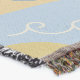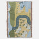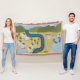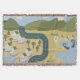 Tecknad karta i stil, platt, med landmärken, berg, väg, hav, flod, skog och hus