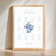 Vågräts sittande tio bord-sjökort ger en välkomnande, elegant och högtidlig ton för ankommande gäster. Vattenfärgsillustration för elegant och chic med blommigt i dammblått mot vit bakgrund. Anpassa det här sittande diagrammet så att det blir ditt eget. TIP: Om du inte behöver någon text lämnar du bara textrutan tom.