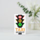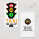 Ett vitt omslag har ett kreativ trafikljus som har tre bildtexter på ljus för att bilda frasen "STOP", "CALL" och "A". Bara under detta är ditt gult företag namn "TAXI" vid sidan av kontaktuppgifterna. Överst uppe finns en guld i taxi-logotypen som du kan använda följt av ditt prestigefyllda namn, kontaktuppgifter och ett sloganalternativ för att annonsera dina tjänster. Ett underbart kort för taxi-förare till använda.