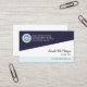 I det främsta mörk blått trapeziumet finns en global logotyp för hjärtslag som du kan använda vid sidan av namn och kontaktuppgifter. Detta följs av er prestigefyllda namn och befattning i den vita lagrar. Bara under detta finns ett alternativ med en slogan för att publicera dina tjänster.