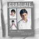 Trendig, moderna och snyggt studenten-annonskort, som innehåller inslag av modern text med namnteckning handskriftsskript. Tre foton från student markerar kortets framsida med "Student" accentuerad i en slimmad vit övertoning. Kortets baksida ger personlig textutrymmen för information om studenten och framtida resor. Vita skrivningar på silver grått eller anpassa bakgrunden så att den passar din skolas färg eller valfri färg. Perfekt för gymnasiet, högskolan och universiteten.