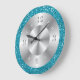 Snyggt Turcoise Blue Glitter Silver Nummer Stor Klocka