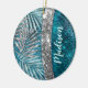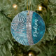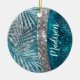 Snyggt turkos silver glitter löv monogram julgransprydnad keramik