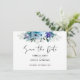 Blått kort för elegant vår blommigt lila bröllop spara datum. Ange tonen för bröllop med det här unika, vildblommande spara-till-datum-kortet som innehåller en andningsblandning av dammiga blå, lila och lilac-blommigtar. Fintvätt av vildblommor och lush grey skapar en viskös, men ändå elegant estetisk, som fångar skönheten hos en blommande vår eller sommarskugga. Kombinationen av flytande skript och klassisk serif-typografi ger en sofistikerad beröring som säkerställer att ditt speciella datum är tydligt. Perfekt för naturen som älskar par, denna charmerande och romantiska besparing av datumkortet är ett vackert sätt att tillkännage ert kommande firande med stil och ära.