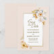 Berätta för dina vänner och din familj om din speciella dag i stil med det här vita och guld blommigt-spara-det-date-kortet. Med hjälp av textmallarna som är enkla att använda kan du snabbt och enkelt lägga till all nödvändig information. Med en mängd olika pappra typer och stilar i hörnet kan du skapa riktigt unika kort som återspeglar din individualitet, tillsammans med nedladdningsalternativet om du föredrar ett digitalt format.