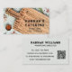 Snyggt Wood Cshing Board Cooking Rustic Script Catering Charcuterie Party Affärskort har en rustik brun köksskiva av trä med ett överlägg av ditt namn, företag, typ av företag, beteckning eller ytterligare information på framsidan som är accentuerad med örter och kryddor. På motsatt sida finns dina kontaktuppgifter för personligen, social-medieinformation och QR-kod för anpassningsbar. Perfekt för ett stort antal olika företag, marknadsföring, från charkuterier för små företag till köksmässor, köksklasser och mycket annat. Anpassa genom att redigera texten i textrutorna. Designad av ©Evco Studio www.zazzle.com/store/evcostudio