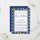 Elegant, modernt och mycket snyggt sätt att göra ett av era viktigaste tillkännagivanden. I den här SPARA DATUM-inbjudan visas BARBADOS flagga i ett mönster i sidled. Skriptversen kommer från Mark 10:8. Baksidan är en ren, blå bakgrund med en subtil mönster som säger SPARA DATUM. Anpassa informationen på framsidan. Ett idealiskt sätt att fira din tro och din flagga före din Speciella dag. En del av BARBADOS-BRÖLLOP-samlingen genom Berean Designings.