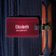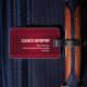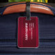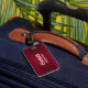 Personlig bagagetapp med röd bakgrund som dekoreras med elegant och prydnadsmönster längs gräns.