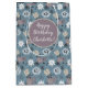 Anpassa texten på framsidan och baksidan av den här snyggtens presentsäck. Det har ett blommönster i blå, vit och ro. Mönster är större på båda sidor för att öka intresset. /pmd/v