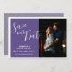 Det här fotot sparar datumkortet med ett lodrät-foto ram och en fetstilt lila-bakgrund. Trendigets handskrivna stil-text erbjuder en modern design. Med anpassningsbar kan du lägga till kommande bröllop-uppgifter.