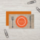 Hög och modern design för ett catering företag av en tallrik och bestick mot en modern ren bakgrund. Lämpligt för ett modernt företag för hälsosam bra catering av livsmedel från stil till hipster. All text kan anpassas helt och hållet och all textinformation för ditt företag kan läggas till.