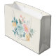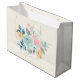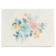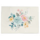 Giftväska med en illustration av sötens vattenfärg. En blombukett med rosa och blåa blommor omgiven av grönt löv och sprit.