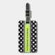 Spot ditt bagage från långväga med denna stilfulla akrylbagagemärkre. Bekläda göras i en svartvit polka pricker mönster, med ett svartvitt randigt musikband med ett ljust - grönt centrerar, spring över mittet. Baksidaen göras i ett fast ljust ljust - grön färg. Text i svart, på bekläda och baksidaen av märkren, är fullständigt anpassadet och redot som ska personifieras.