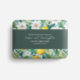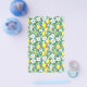 En tvål som omsluter lakan och som är utformad med citroner av gult och vita blommor.