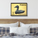 Ett porträtt frimärke från ett mytiskt oberoende Alaska med en tvåstensfärgning av ett Eider Anka. Bakgrunden är gömt av hjärnburk. Texten "Alaska", "Soapstone Carving" och "Postage 3 Nuggets" visas också. Den gemensamma Eider, Somateria mollissima, är det största anka som finns i Europa och i Nordamerika (med undantag för Muscovy Anka som endast når Nordamerika i en vild i sydligaste Texas). Eider fördelas över Europas norra kusten, Nordamerika och östra Sibirien. Den föder i Arktis och vissa nordliga tempererade regioner, men vintrarna ligger något längre söderut i tempererade områden, när den kan bilda stora flockar på kustnära vatten. Den kan flyga med hastigheter upp till 70 mph (113 km). Eider kännetecknas av sin skrymliga form och stora, kilformade räkning. Mannen är otvetydig, med sitt svarta och vita tumage och sin grönt. Hondjuret är en brun fågel, men kan fortfarande lätt skiljas från alla anka, utom andra ejderarter, på grundval av storlek form och huvudform. Det här anka-uppropet är en trevlig "ah-oo". Arten är ofta lätt åtkomlig. Drake i Europa, östra Nordamerika och Asien/westerna Nordamerika tävling kan särskiljas genom mindre skillnader när det gäller börd och notering i färg. Denna art föder upp kräftdjur och blötdjur, och musslor är ett prioriterat livsmedel. Eider kommer att äta musslor genom att svälja dem hela; snäckorna krossas sedan i magarna och utsöndras. När man äter en krabba tar Eider bort hela klo och ben och äter sedan kroppen i ett liknande mode. Det är rikligt, med en befolkning på 1,5-2 miljoner fåglar i både Nordamerika och Europa, och även ett stort men okänt antal i östra Sibirien. En särskilt berömd koloni av eiders bor på Färöarna i Northumberland, England. Fåglarna var subjekt i en av de första fågelskyddslagarna någonsin som Saint Cuthbert inrättade år 676. Cirka 1 000 par bor fortfarande där varje år. Eftersom St. Cuthbert är Nordlandets skyddshelgon var det naturligt att eider valdes som landets emblemfågel. Fåglarna kallas fortfarande ofta Cuddys anka i området, eftersom "Cuddy" är den välkända formen av "Cuthbert". Den gemensamma Eider är en av de arter som omfattas av avtalet om bevarande av flyttande sjöfåglar i Afrika och Eurasien (AEWA). Eiders är kolonialuppfödare. De bor på kustöar i kolonier på mindre än 100 storleka upp till 10 000-15 000 individer. Kvinnliga ejdrar uppvisar ofta en hög grad av naturfilopati, där de återvänder till sin ras på samma ö där de kläcktes. Detta kan leda till en hög grad av släktskap mellan individer som bor på samma ö, liksom till utvecklingen av familjebaserade strukturer för hondjur i social. Detta samband har troligtvis spelat en roll för utvecklingen av kooperativa avelsbeteenden bland eiders. Exempel på sådana beteenden är att värpa ägg i hägnen på närstående individer och att ge daghem, där kvinnliga djurskötare lagrar och arbetet med att föda upp anklingar. Erikens bo är byggt nära havet och är fodrad med den berömda härden, plockad från kvinnans bröst. Denna mjuka och varma foder har sedan länge skördats för att fylla kuddar och kjolar, men under senare år har den till stor del ersatts av domestic från lantbruksgäss och syntetiska alternativ. Även om nedgrävda kuddar eller kjolar nu är sällsynt fortsätter nedskärningen av skörden och är hållbar, vilket kan göras efter det att anklingarna lämnar boet utan att fåglarna skadas.