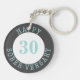 Denna 2-tums akrylbaserade nyckelring har en platshållare för antalet tröghetsår med ord, "lycklig sober-bröllopet", i cirkulärt turkos brev mot svart bakgrund.
