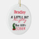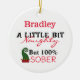 Vi har lämnat ett utrymme för dig att föra in namn från den lyckliga individ som får titeln "lite stel, 100 % nykter". Vare sig det är en vän, en familjemedlem eller till och med dig själv, handlar det om bra-naturen roligt. Detta prydnadsämne är ett utmärkt tillskott till Julgran eller en lustig överraskning för en väns träd. Det är ett trevligt sätt att göra din julhelg lite mer elak.