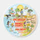 En vismisk tecknad av Sydkalifornien - klassiska karaktärer njuter av det varma Kalifornien sol som lyser högt över allt.