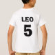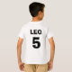 The back is designed in a classic soccer jersey style, fully editable with the child’s name and age (for example: Leo 5), making it a unique and memorable birthday outfit.