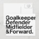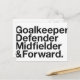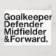 Goalkeeper, Defender, Midfield & Forward.