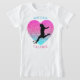 Snygg fotbollsflicka t-shirt. Det har ett faux gnistra ombre hjärta med en silhuett av en tjej som spelar fotboll över det. Skruvar ovanför hjärtat och är personlig med ditt barns namn längs designens grund!