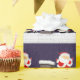 En julklapp med söt jultomte på taket som sparkar en fotboll.