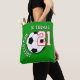 Cool Soccer Mom Tote Bag featuring soccer / football ball and easily editable texts with "Soccer Mom" and "Go Thomas" and "21". Make your kids proud / be a fan.
