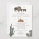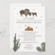 En barndusch med e-postinbjudan med en illustration av en buffel från baby och mamma överst med illustrationer av ökenberg, måne, stjärnor och kaktus. Anpassa texten.