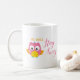 Den här social som avstånd mugg har en söt uggla-design med texten "Var god håll borta".