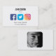 Ett marknadsföring/kampanjtryckt profilkort som innehåller information om hur du hittar dig på ett urval av webbens viktigaste medieplatser i social. På baksidan kan du även ladda upp din egen profil/headshot. Du kommer att få ett paket med fullt eller en kartong med egna anpassade uppgifter. Om du vill ändra/redigera texten på det här kortet skriver du över exempeltexten i området PERSONALIZE (KLICKA PÅ DETAILS) eller klickar på Anpassa. Ladda upp ett eget foto genom att klicka på miniatyrbilden för exempelbilden/fotot och följa anvisningarna för att ersätta med ditt eget. Om du vill lägga till fler medieikoner i social kontaktar/begär du Pip via Zazzle-post. Ikoner från flatikoner