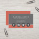 Peach och grått Chevron gräns utformar social-mediekortet med social-medieikoner. Anpassa med ditt namn, din e-postadress eller din webbplats och ditt mobila nummer. Om du vill lägga till linjer med text användor du knappen Anpassa. Teckensnitt stil som används på detta kort är Futura Medium.